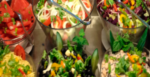 häränfilettä, tomaattia, sipulia, herkkusieniä vartaan vieraana, lohkoperunat